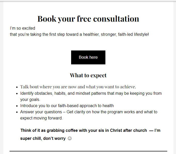 The campaign promoted a limited-time free consultation offer to help women kick-start their wellness journey with personalized guidance in both fitness and faith.